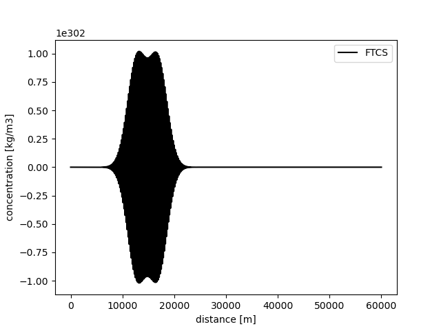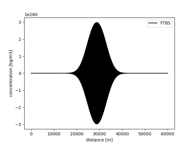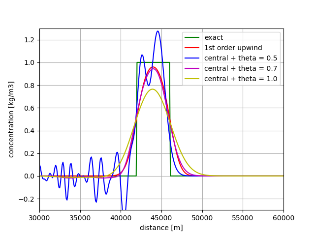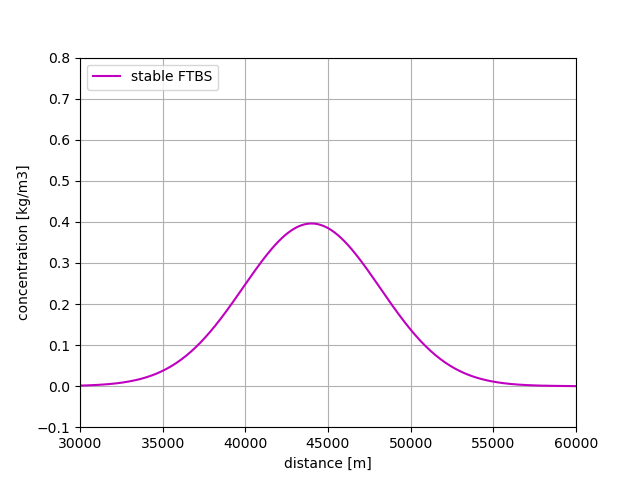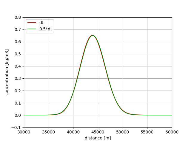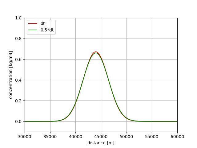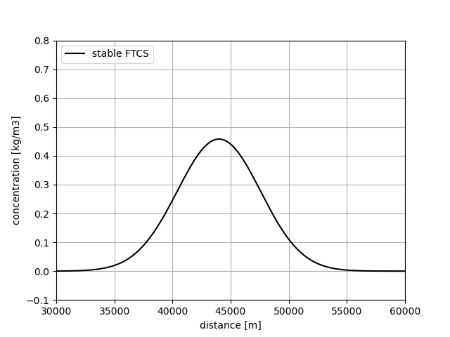 Furthermore, \(K = 55\) m2/s, so that the total amount of diffusion is 72.5 m2/s. The maximum time step for a stable solution is then